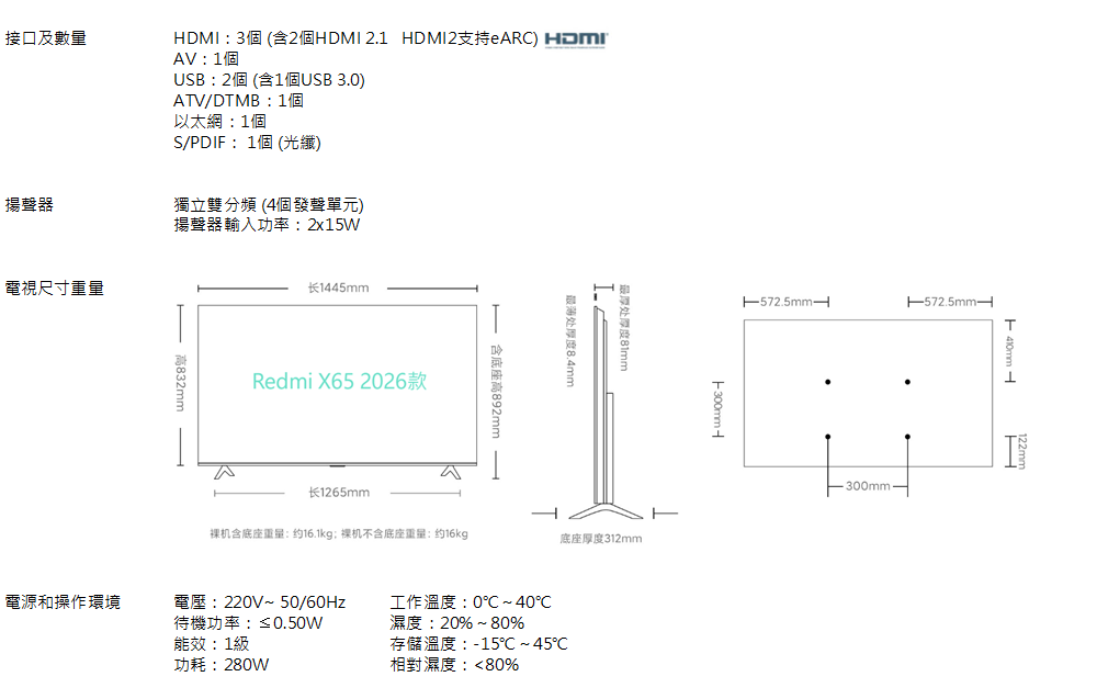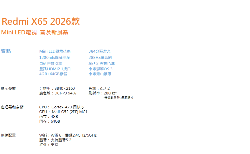 Redmi電視X65 Mini LED 2026