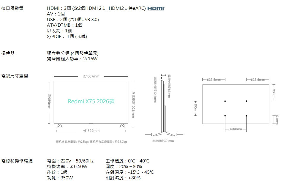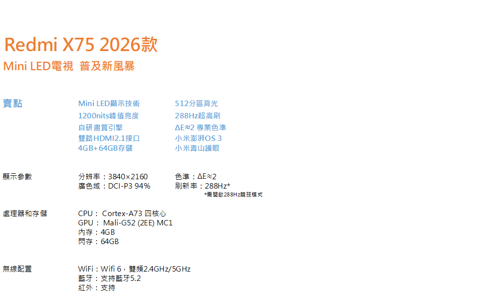 Redmi電視X75 Mini LED 2026