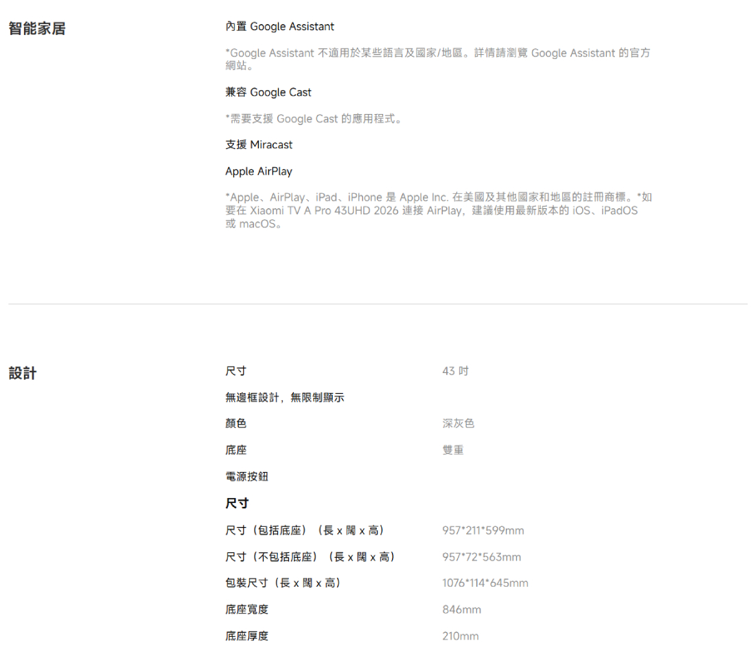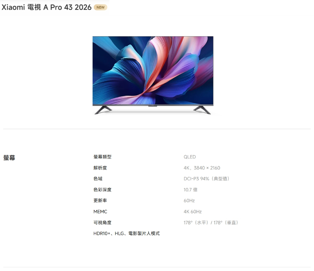 Xiaomi 電視 A Pro 43 2026