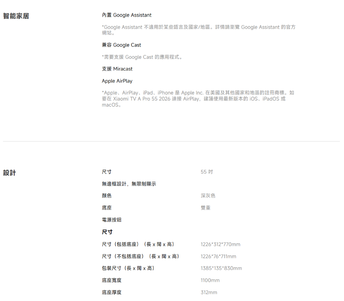 Xiaomi 電視 A Pro 55 2026