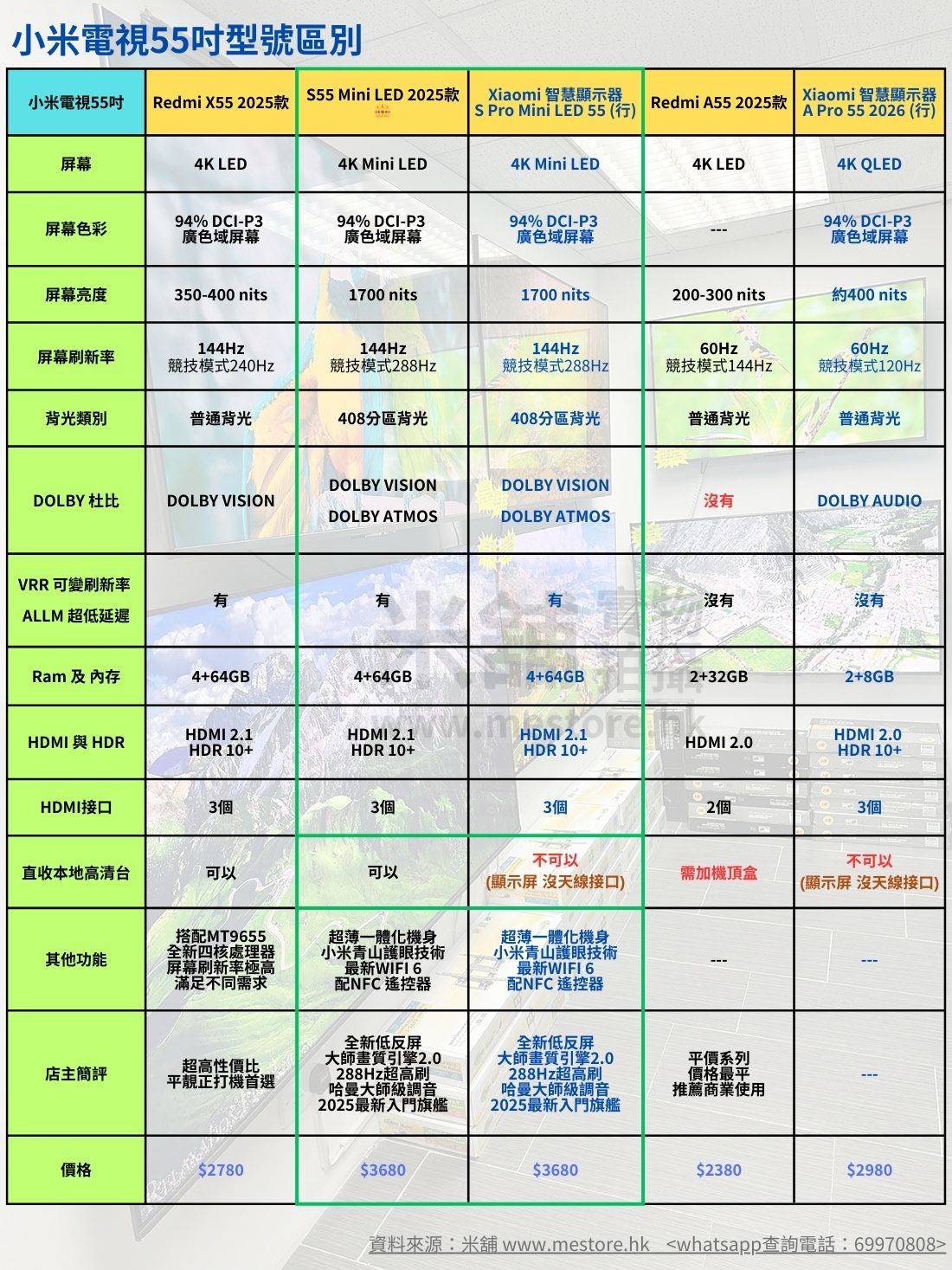 Xiaomi 智慧顯示器S Pro Mini LED 55【行貨】【機價$3680】,畫質及配置跟上述最新入門旗艦 S55 Mini LED 2025款 (水貨)【機價$3680】相同,內置Google TV系統,但此款為顯示器沒天線接口,如經天線收看香港電視台需另加機頂盒,我們有可$430加購